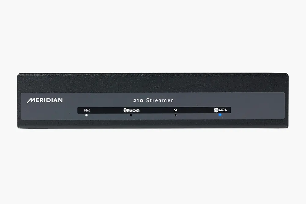 Meridians hochwertige Streaming-Geräte ermöglichen eine nahtlose Integration Ihres bevorzugten Streaming-Dienstes oder gespeicherter Musik in Ihr Audiosystem. Der 210 Streamer bietet dank kabelgebundener und Dual-Band-Wi-Fi-Netzwerkverbindungen sowie Bluetooth®-Technologie große Flexibilität bei Installation und Platzierung.